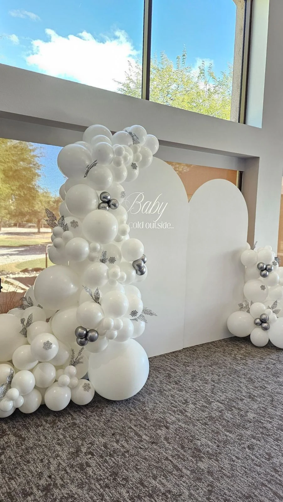 Pictured: Organic Balloon Garland with Shimmer Backdrop and Marquee Numbers